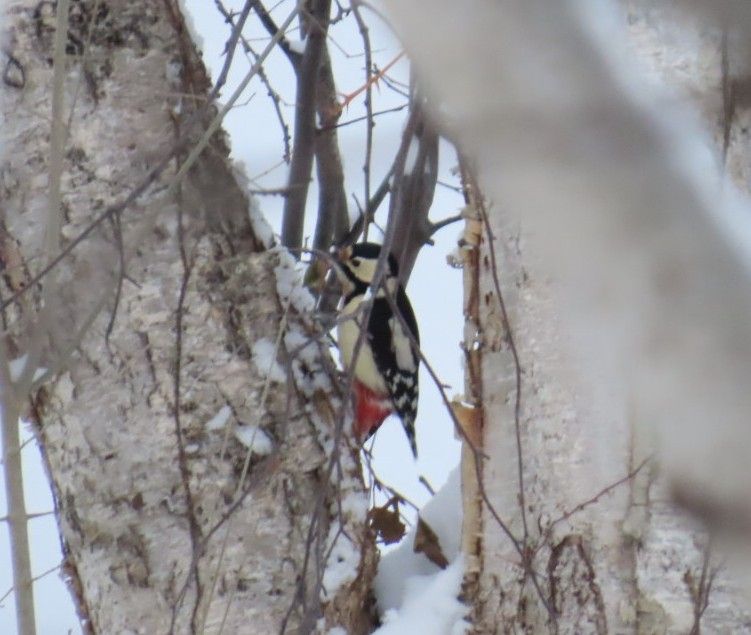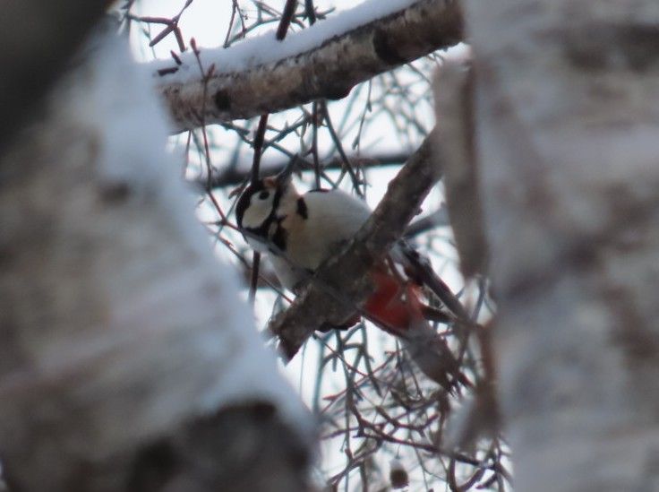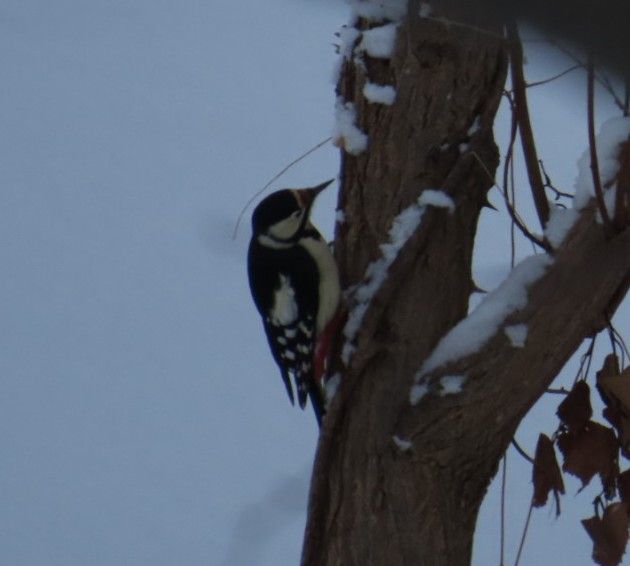 在宅の日の朝は特に晴れた日には近くの公園へ散歩に行きます。しかし、冬の時期はそうはなかなかそうはきません。朝起きて雪が積もっていると雪かきをしなければいけんません。仕事が始まって早々にインフレンザにかかっていまったりして、散歩に行って鳥さんとかリスさんを写真に撮るのも楽しみの一つだったのですがそれも今年に入ってからはまだやれていません。でも、今朝雪かきが終わり家の裏にあるちょっとした林で機せずして鳥さんの写真を撮ることがでしました。